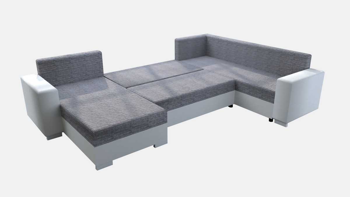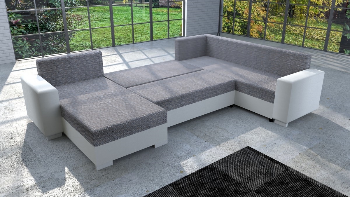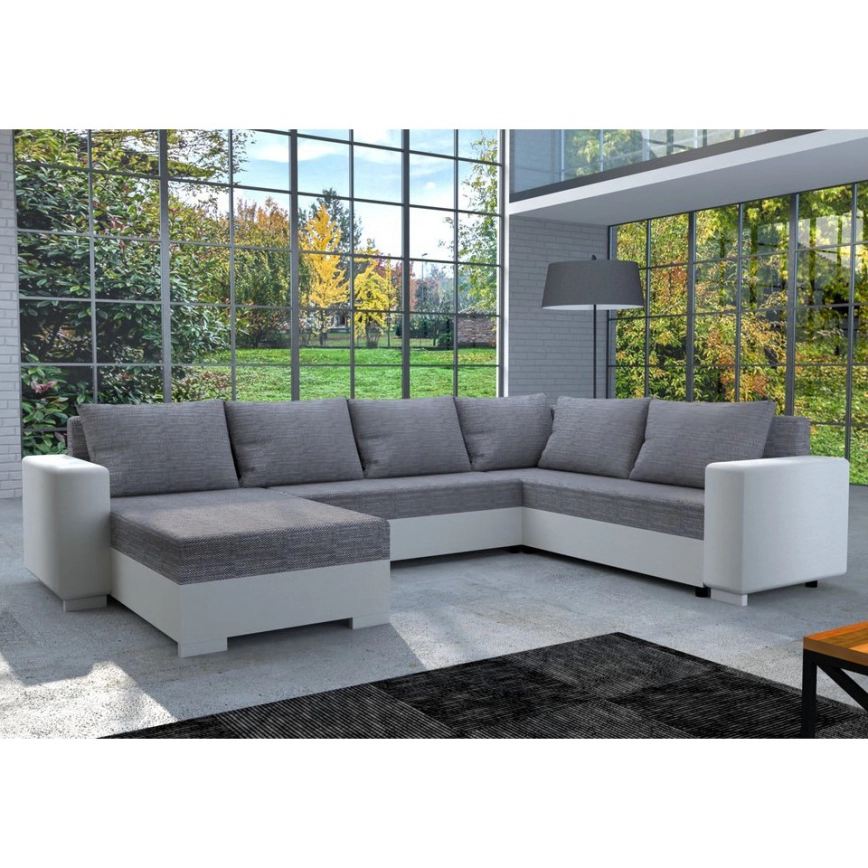 • YORK Upholstered Reversible U-Shaped Sofa Bed — White/Gray