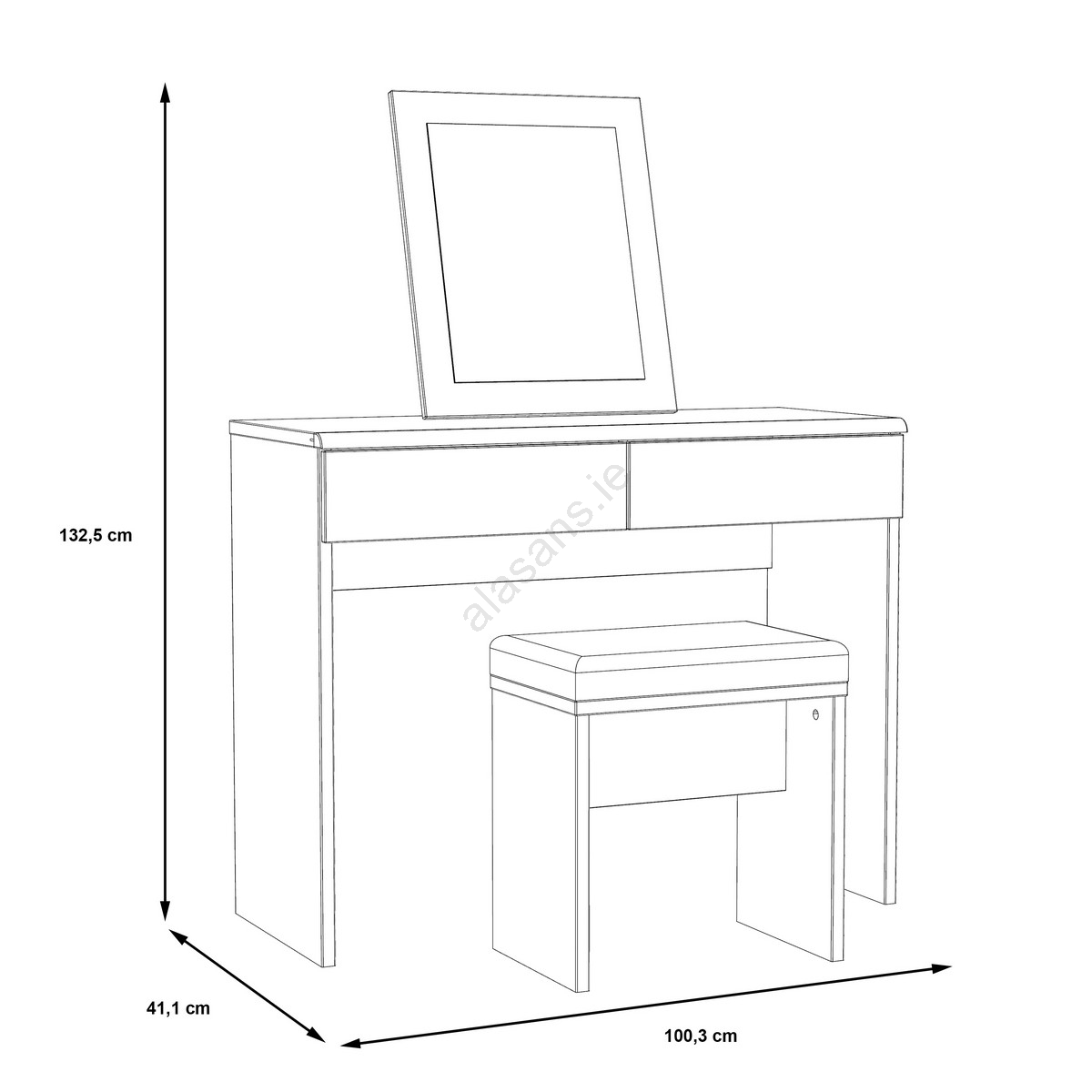 • It features two drawers that provide ample storage space for cosmetics and other items.