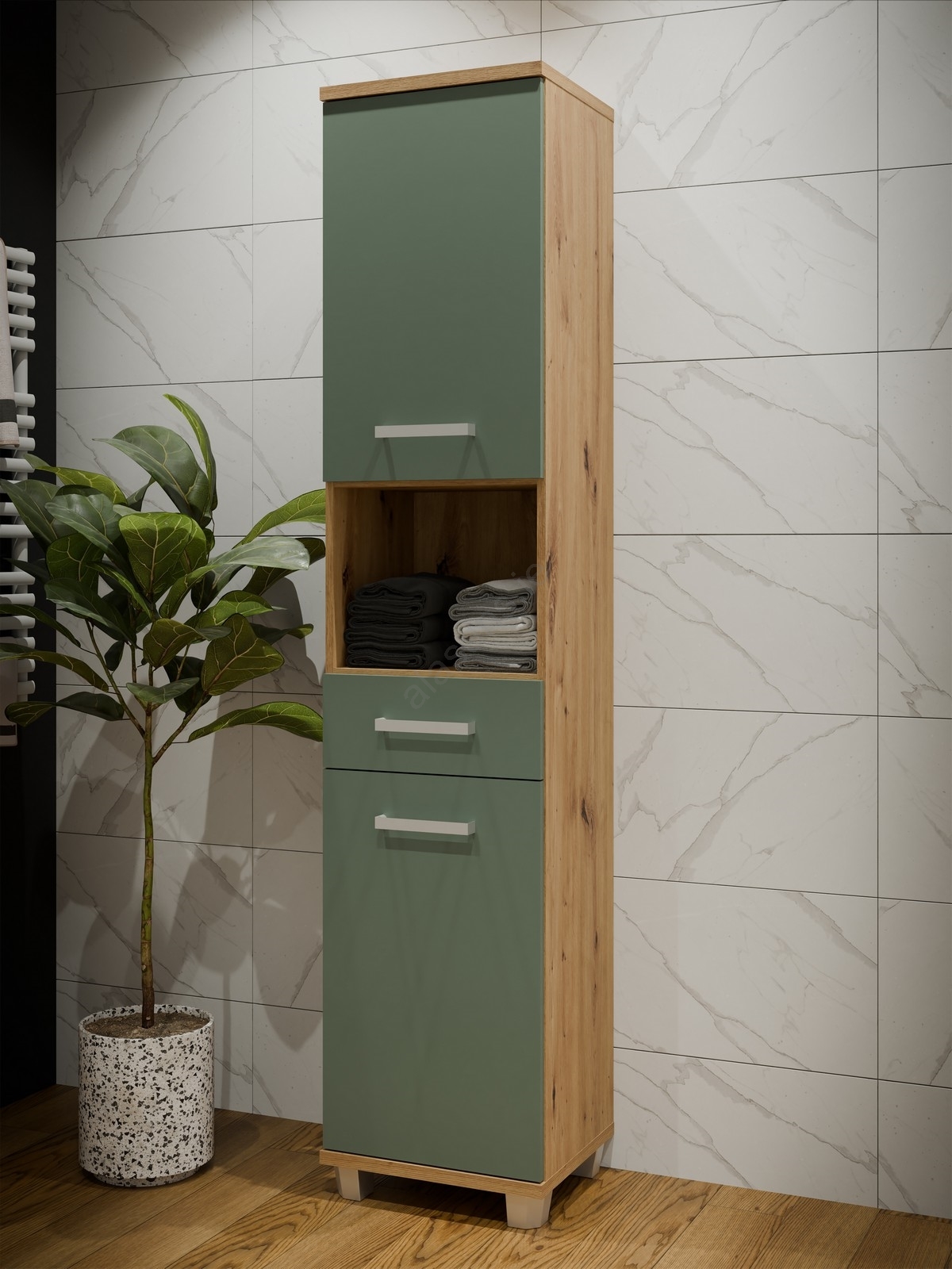 VENOM Bathroom Cabinet, Green / Artisan Oak