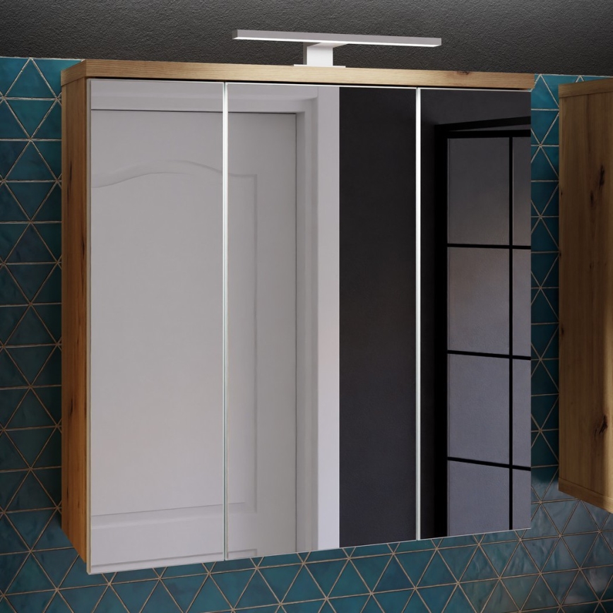 • VENOM Wall-Mounted Mirrored Bathroom Cabinet, White/Artisan Oak