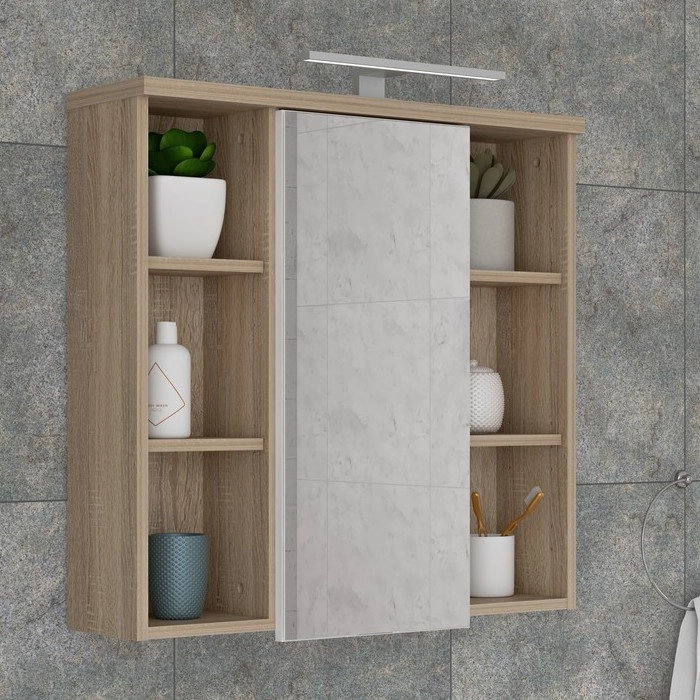 • VENOM Wall-Mounted Bathroom Cabinet with Mirror, White/Sonoma Oak
