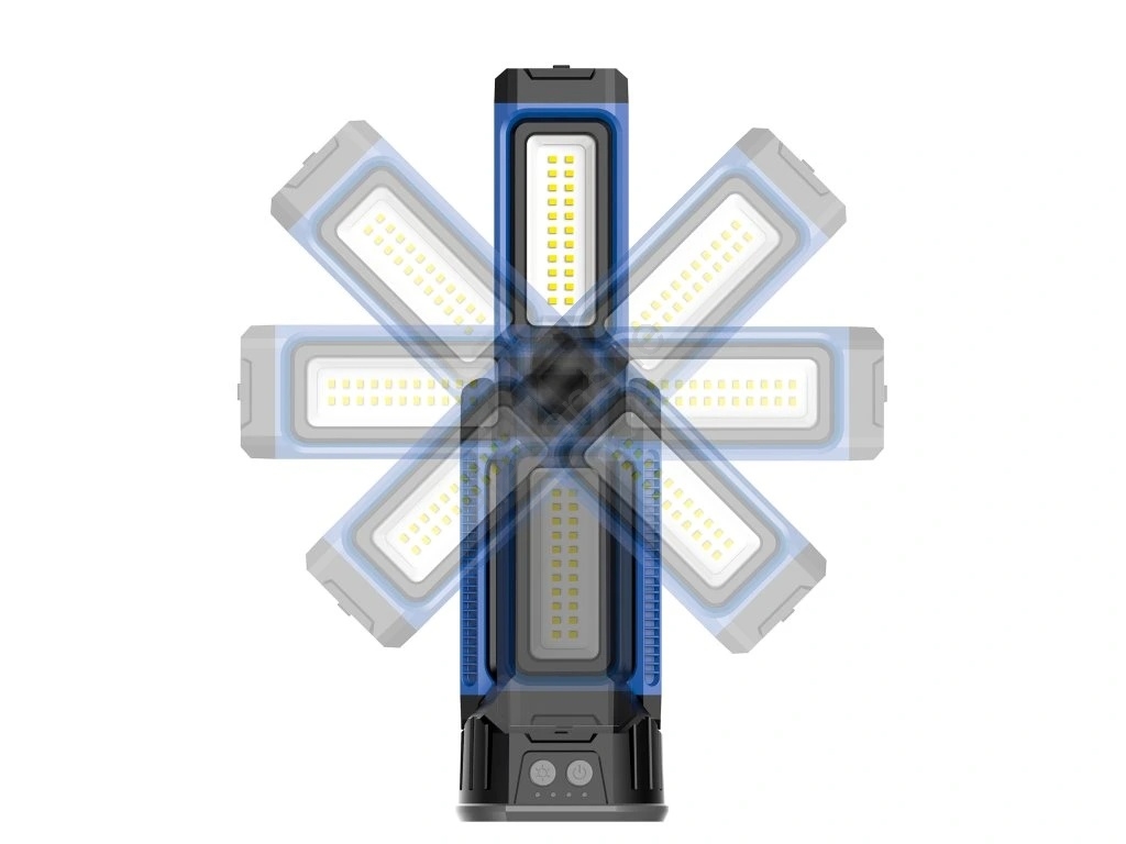 • 3 fold-out light heads for maximum coverage without dead angles.