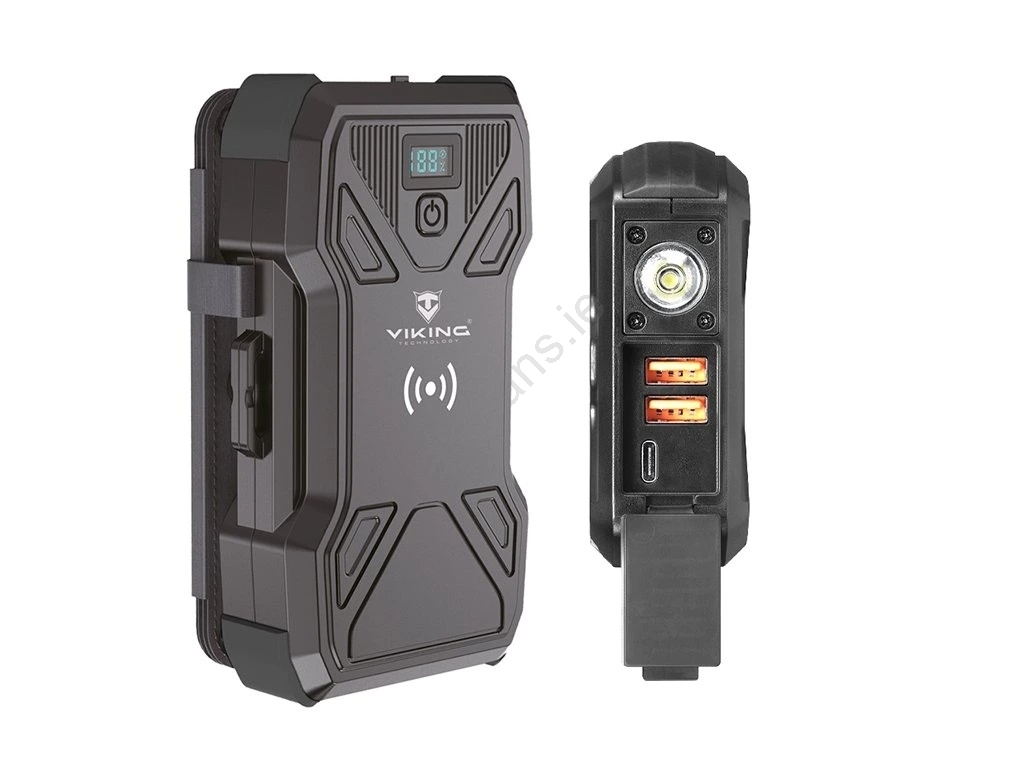 Viking - Power Bank with LED flashlight, wireless charging and solar panel Power Delivery 22,5W/30000 mAh