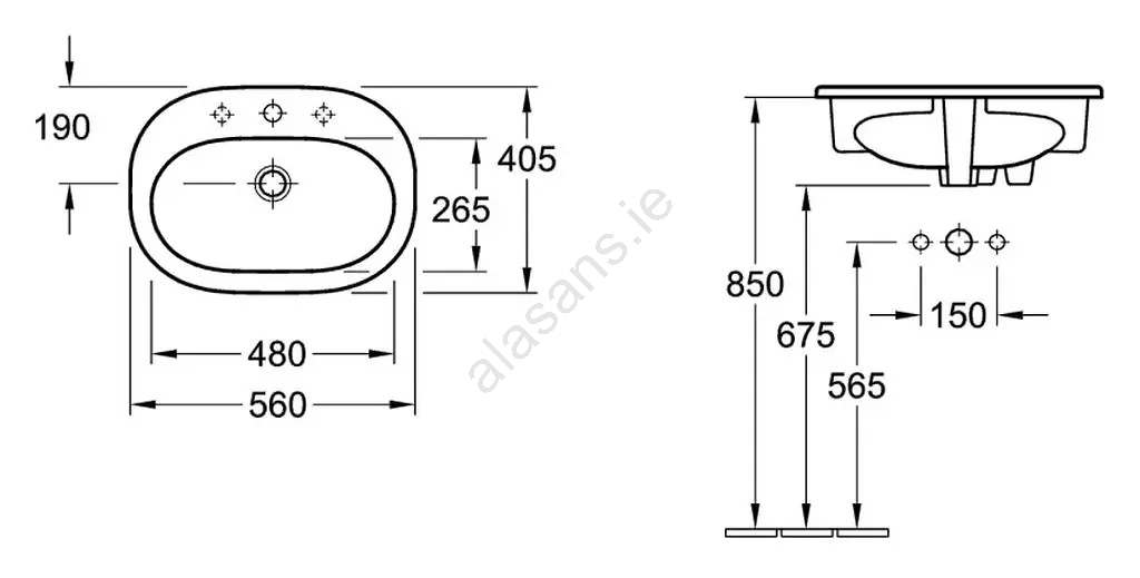 Villeroy & Boch 416156R1 - O.NOVO Recessed Washbasin 56x41 cm Ceramic/White