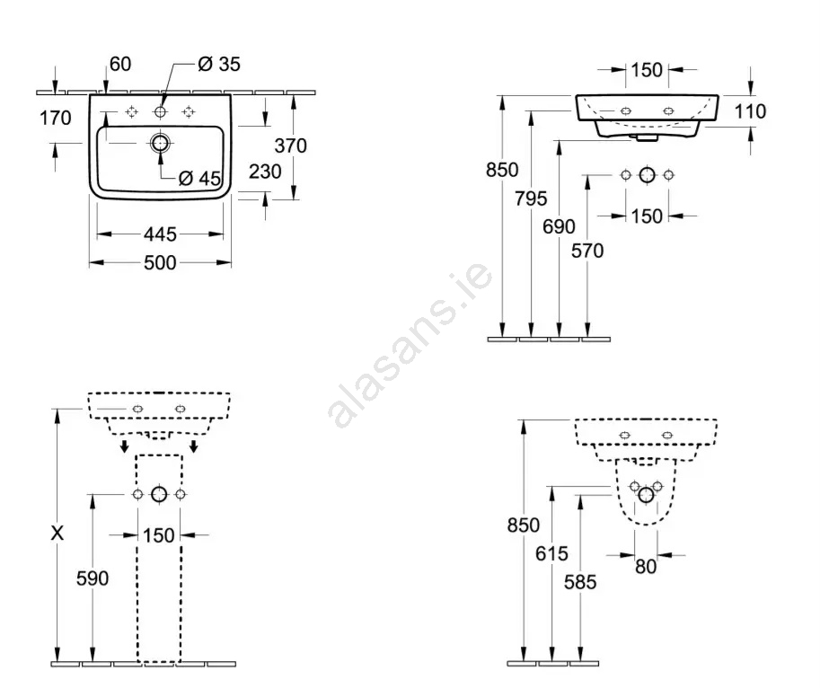 Villeroy & Boch 43445001 - O.NOVO Wall-hung Washbasin 50 x 37 cm, ceramic/white