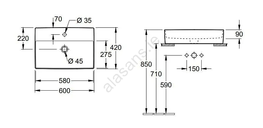Villeroy & Boch 4A076001 - MEMENTO countertop washbasin 60x42 cm ceramic/white
