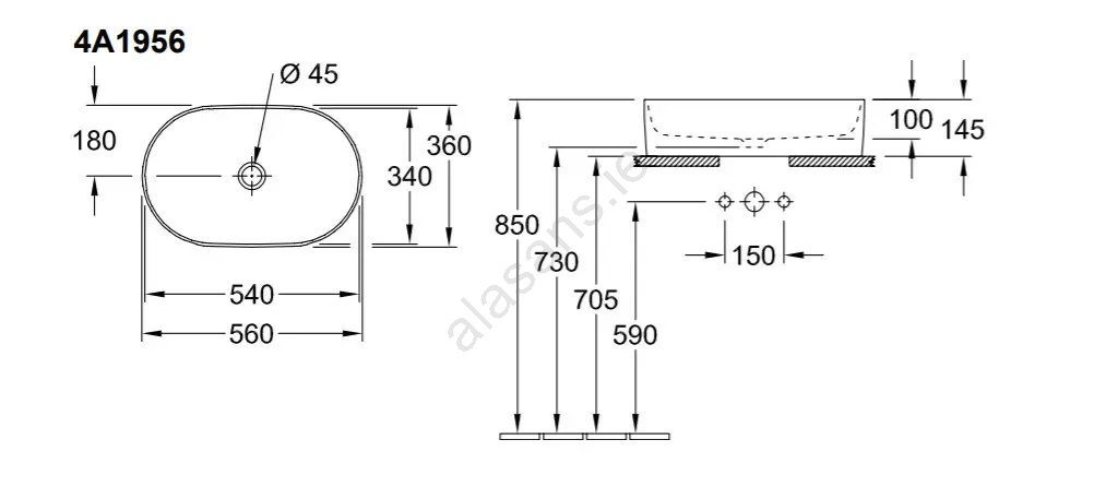 Villeroy & Boch 4A195601 - Countertop washbasin COLLARO 56x36 cm ceramic/white