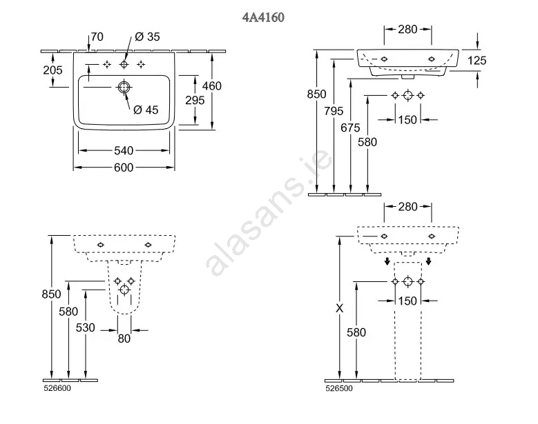 Villeroy & Boch 4A416001 - Wall-hung washbasin O.NOVO 60x46 cm ceramic/white