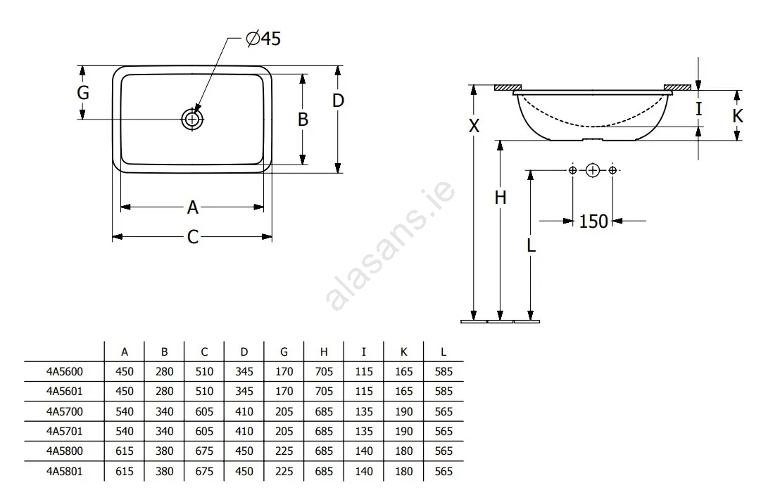 Villeroy & Boch 4A5601R1 - Inset washbasin LOOP&FRIENDS 45 x 28 cm, white ceramic