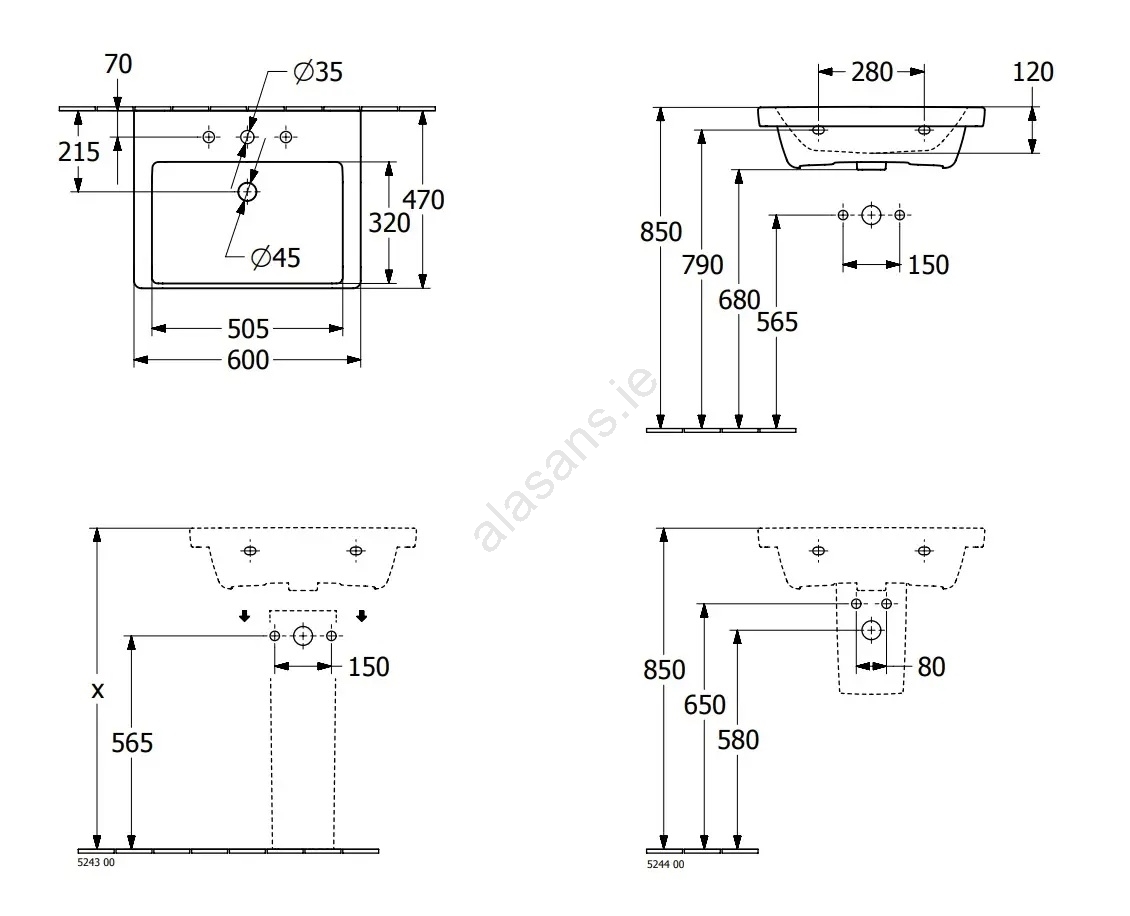 Villeroy & Boch 4A706001 - Wall-hung washbasin SUBWAY 3.0 60x47 cm ceramic/white