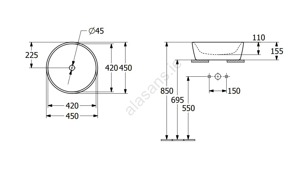 Villeroy & Boch 5A254501 - ARCHITECTURA Countertop Washbasin Ø 45 cm Ceramic/White