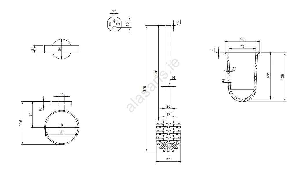 Villeroy & Boch TVA15101600061 - ELEMENTS wall-mounted toilet brush, glass/polished chrome