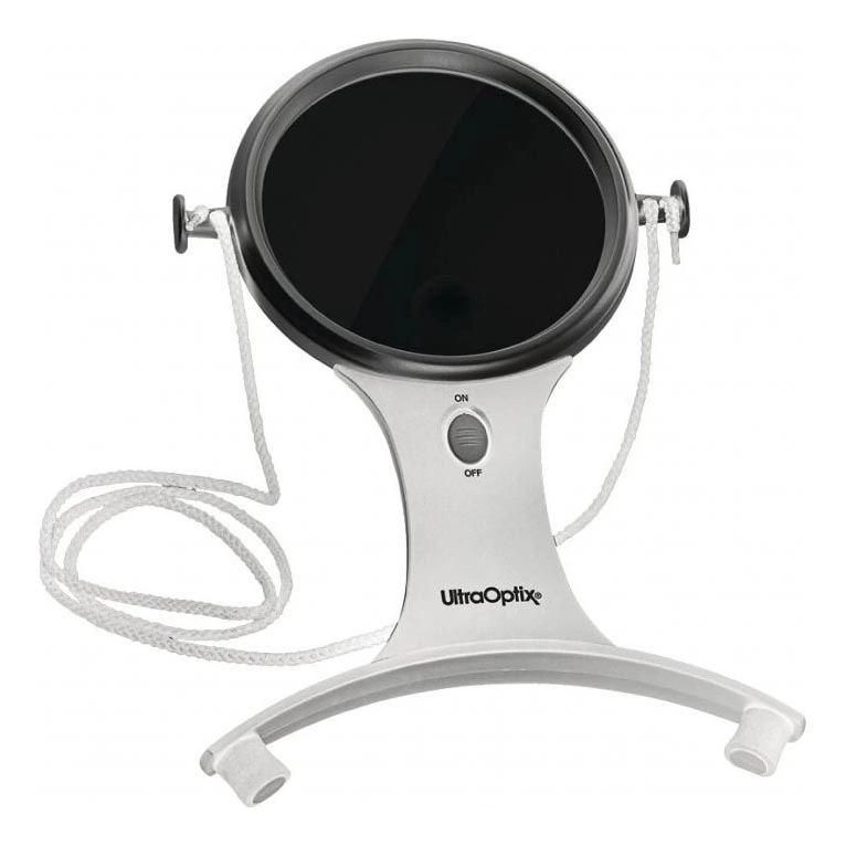 • Monocular magnifier with holder and cord for wearing around the neck.