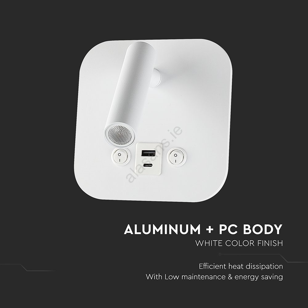 • Wall-Mounted LED Spotlight with USB Port, 8W/230V, 3000K, White