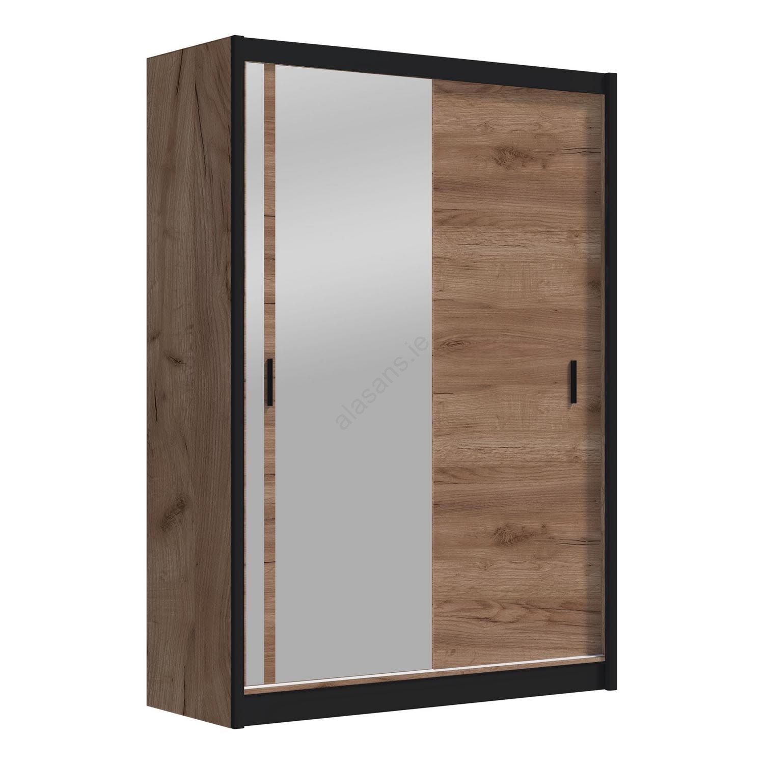 • Wardrobe with mirror SANTINO 150x215 cm oak craft/black