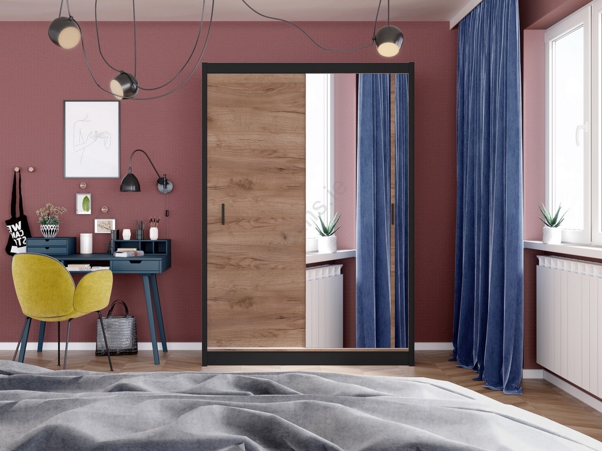 • Wardrobe with mirror SANTINO 150x215 cm black/oak craft