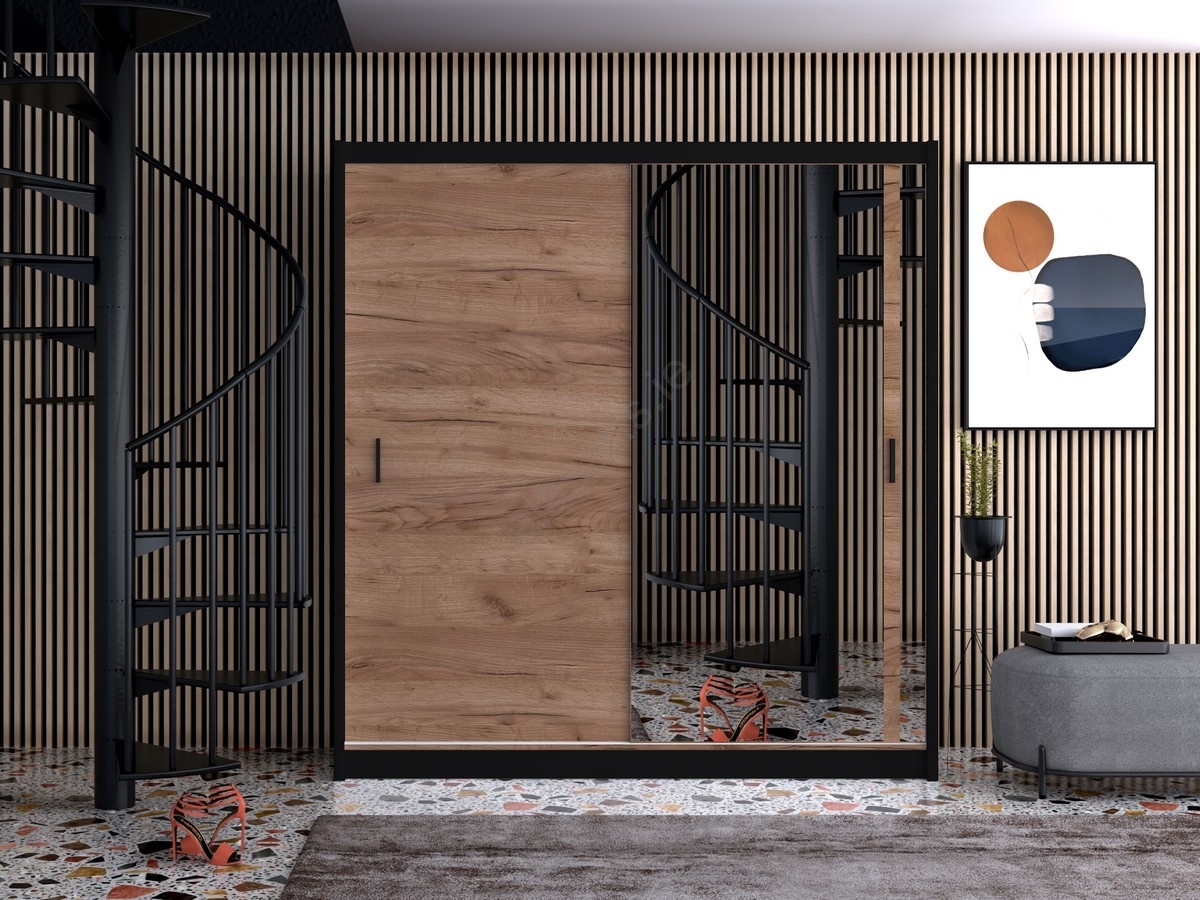 • Wardrobe with mirror MIRO 203x215 cm oak craft/black