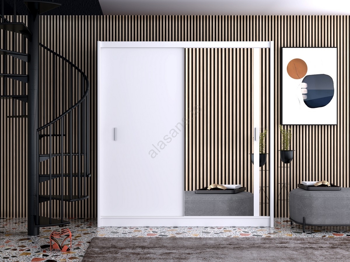 • The mirrored surface of the wardrobe is the perfect combination of functionality and aesthetics, allowing you to see yourself in all your glory.