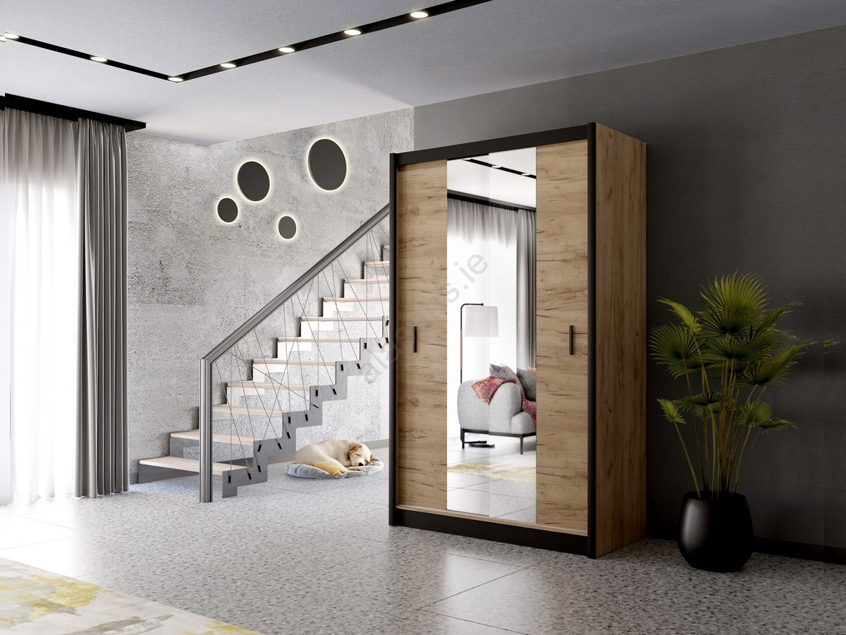 Wardrobe with mirror MIRO 150x215 cm oak craft/black