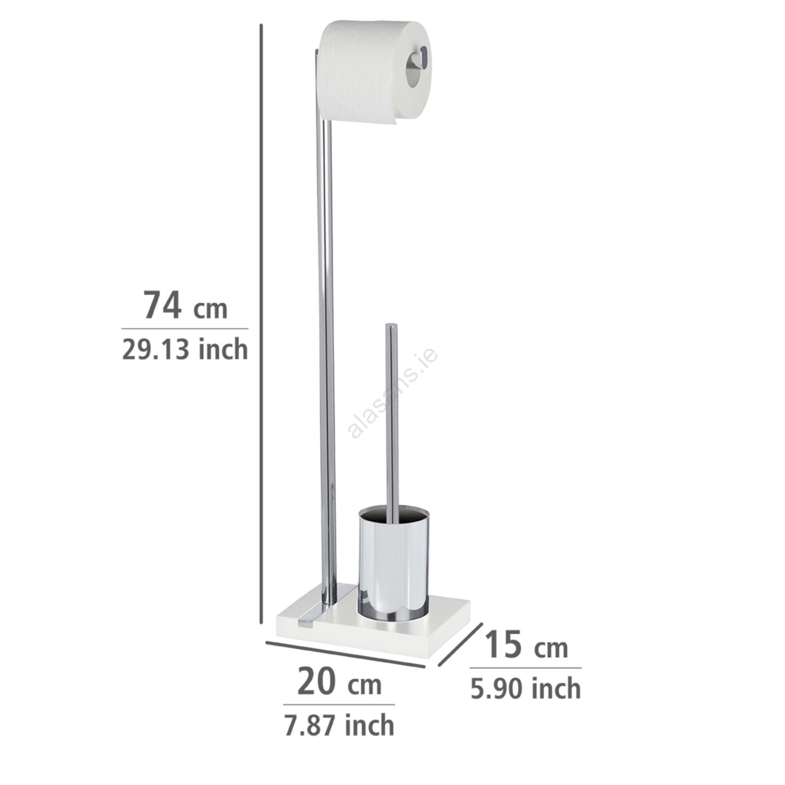 • Combines a toilet paper holder and a toilet brush stand in one sleek unit.