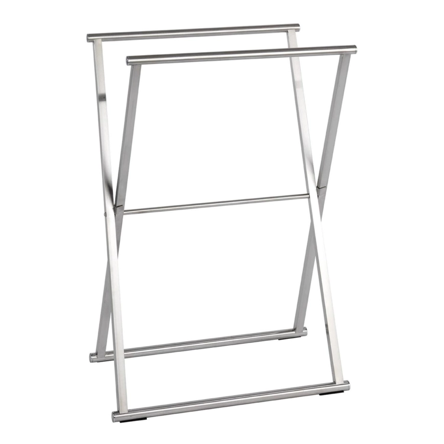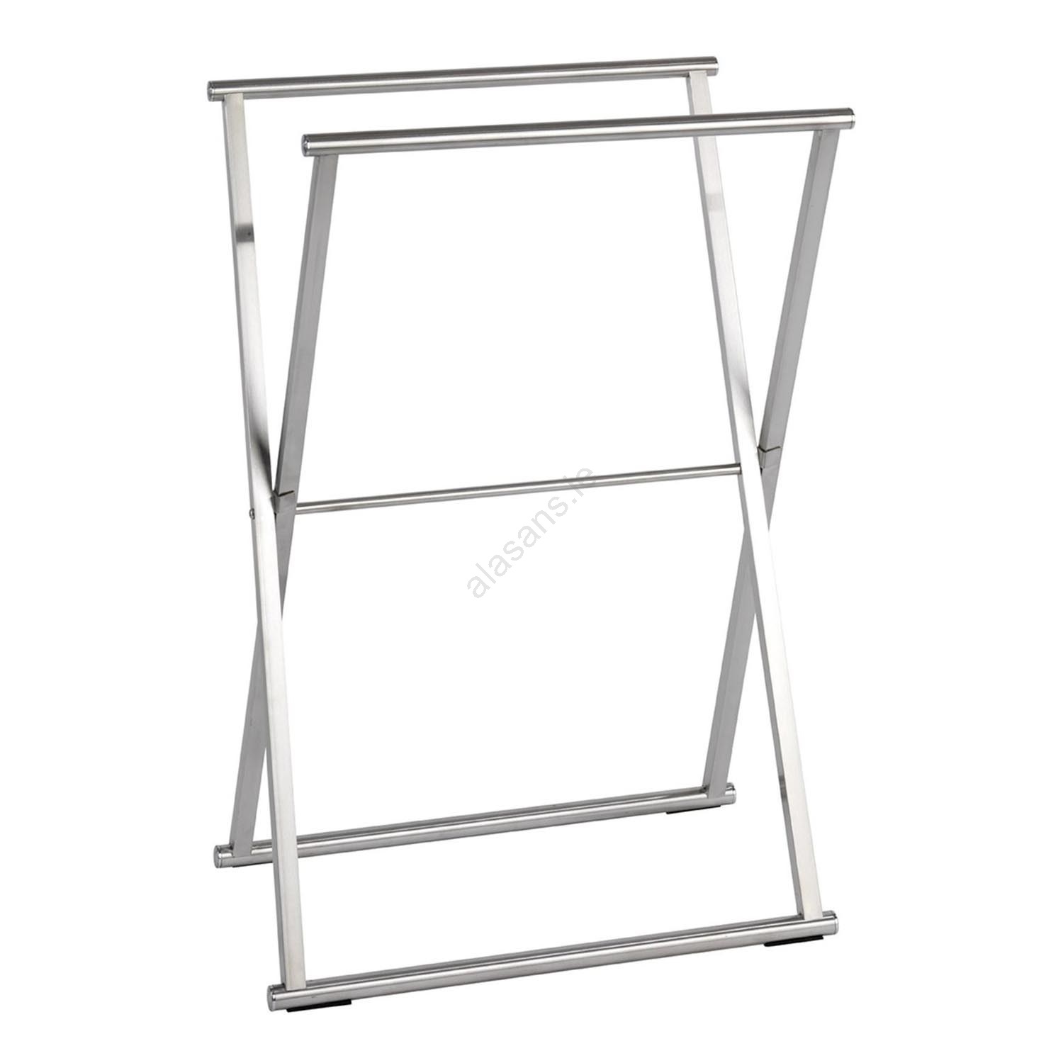 • Elegant freestanding towel and garment stand made of stainless steel.