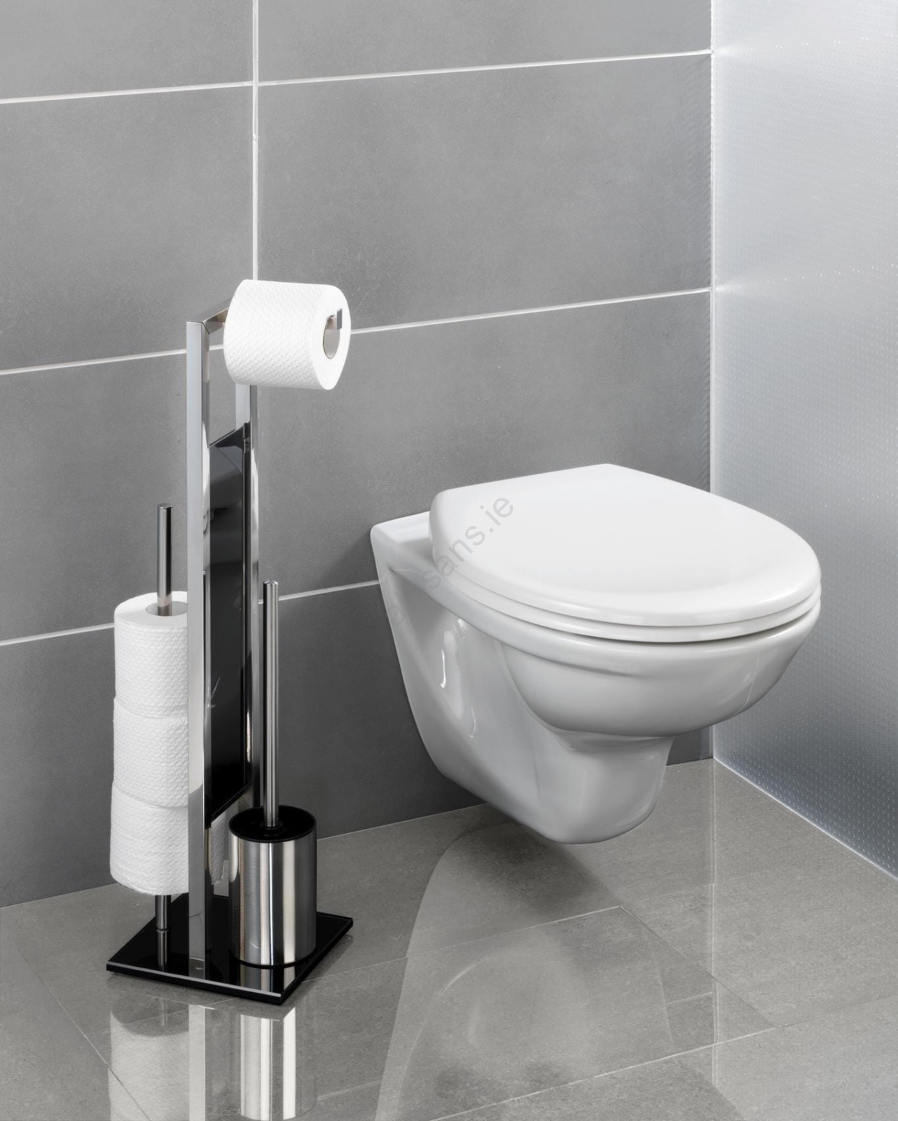 • 3-in-1 combination: toilet brush holder, toilet roll holder and storage for up to 3 spare rolls.