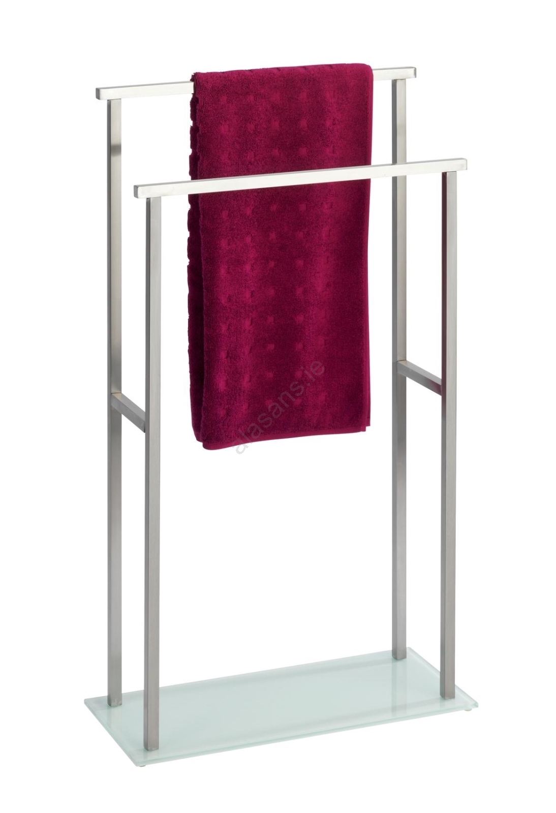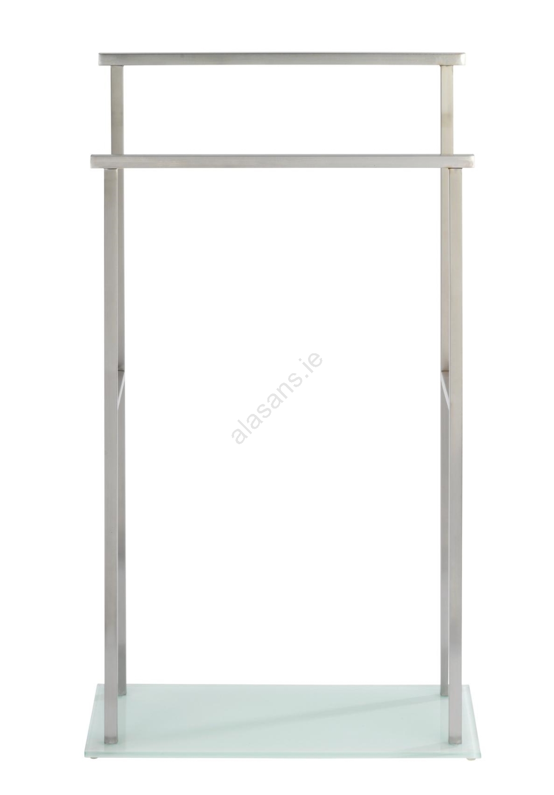 • Elegant freestanding towel stand crafted from stainless steel and tempered safety glass.