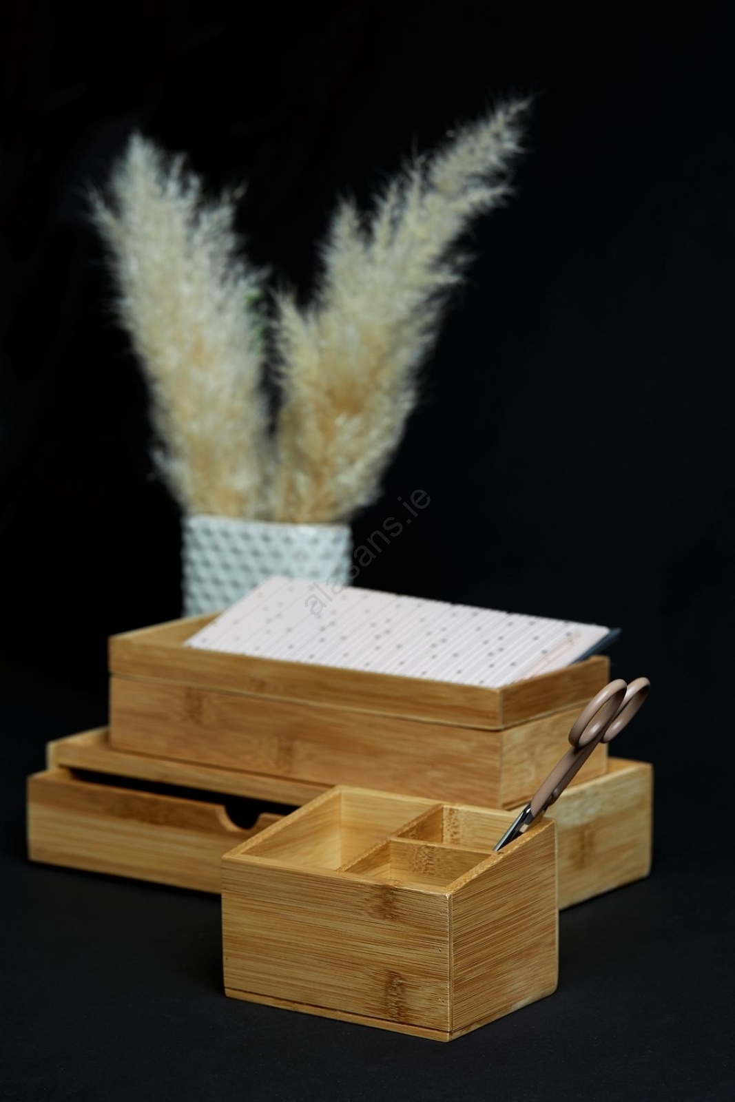• Practical organizer with three compartments for jewelry, cosmetics or stationery.