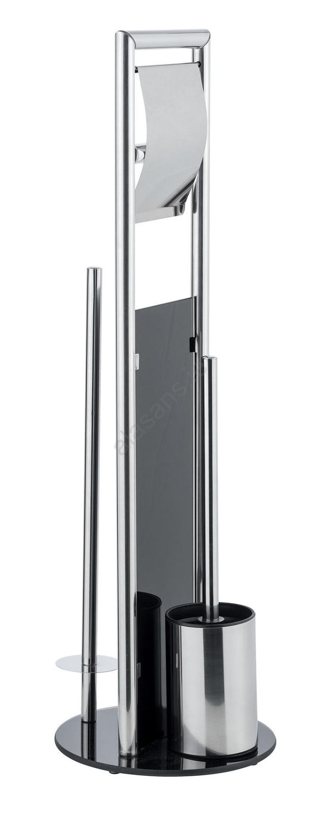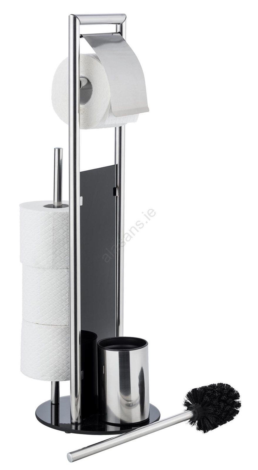 • Practical 3-in-1 solution – toilet paper holder, spare-roll dispenser and toilet brush with holder.