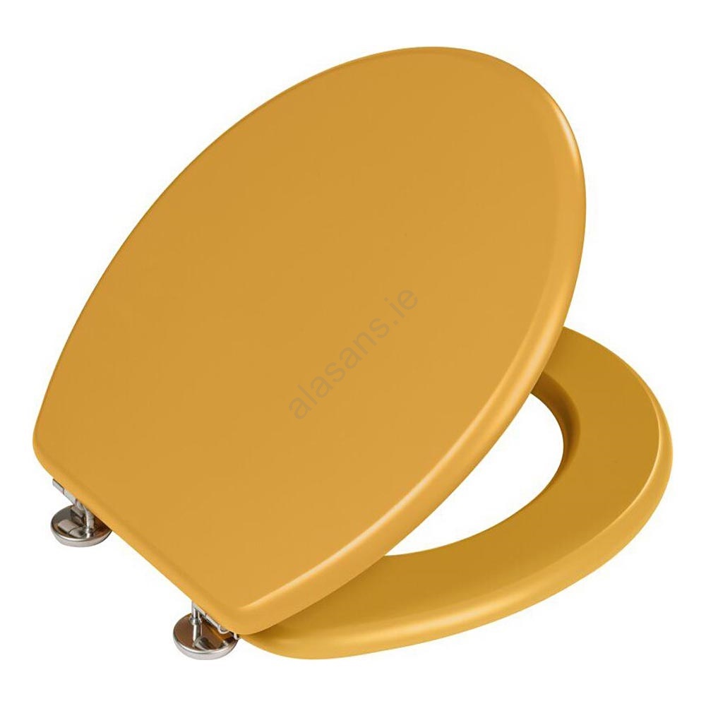 • Stylish retro toilet seat in a matte mustard yellow.