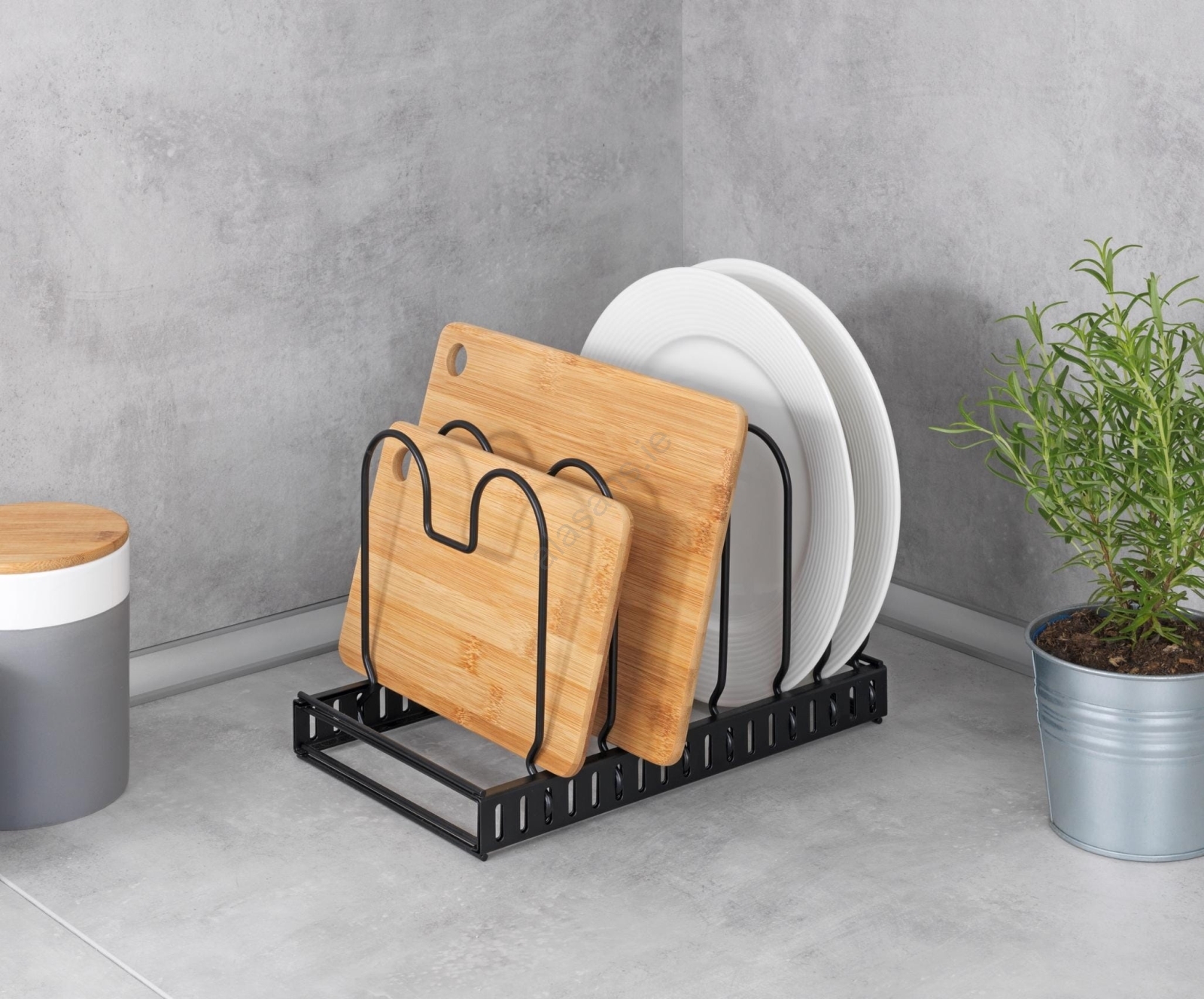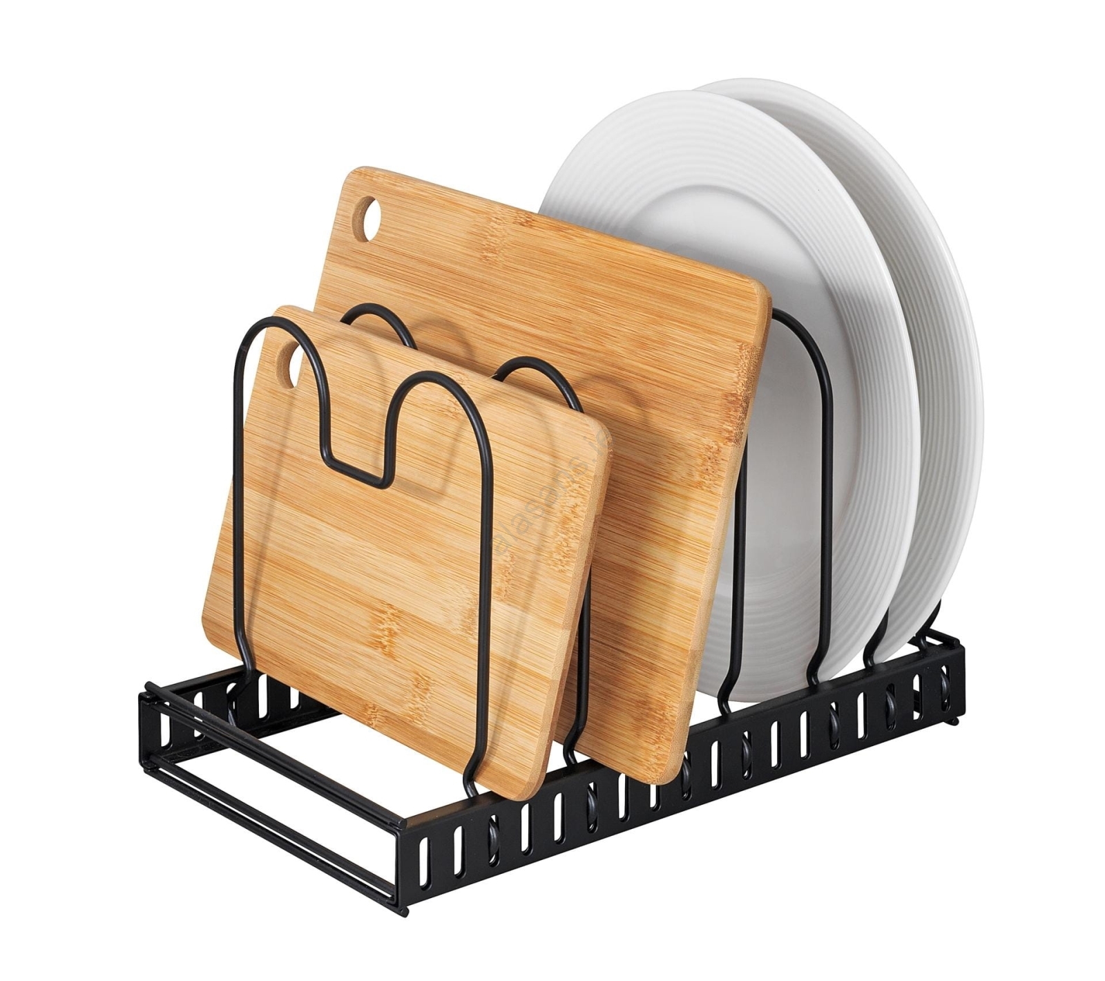 • Enables space-saving, orderly storage of lids, pans, baking trays and cutting boards.