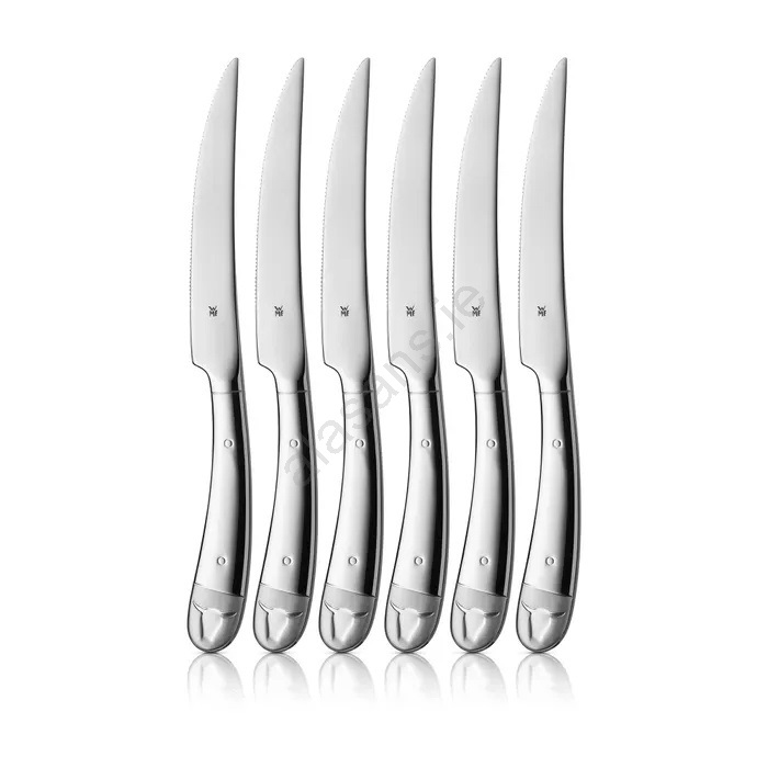 • 6-piece steak knife set from the WMF collection is designed for easy, clean carving of grilled meats and steaks.