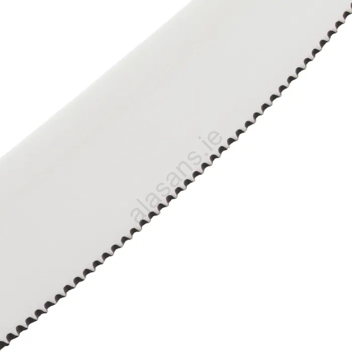 • Very sharp, finely serrated edge (micro-serrations) that effortlessly and cleanly slices meat without tearing the fibers, while holding its edge longer.