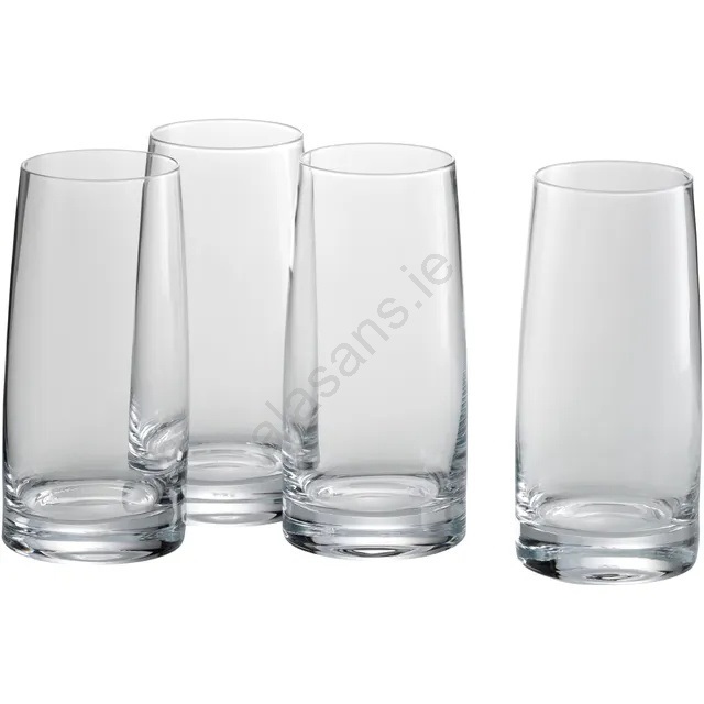 • Set of four elegant highball glasses — ideal for cocktails, soft drinks, water or refreshing beverages.