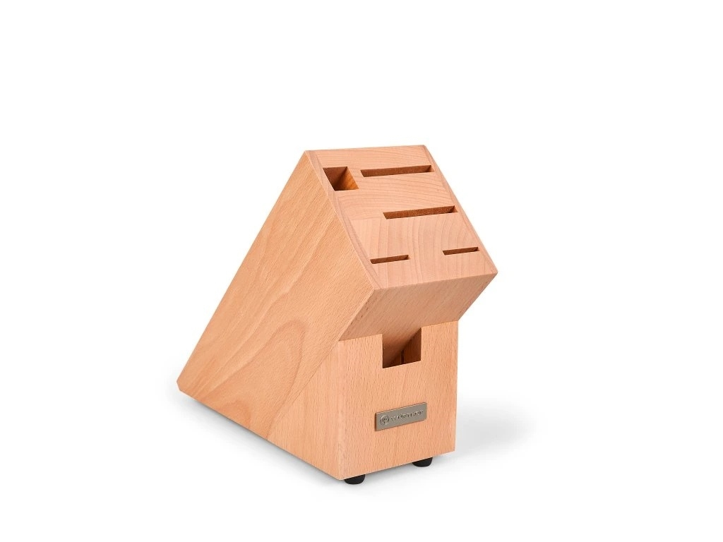 • The knife block is crafted from beech wood and offers storage for up to 4 knives, a honing steel and kitchen shears.