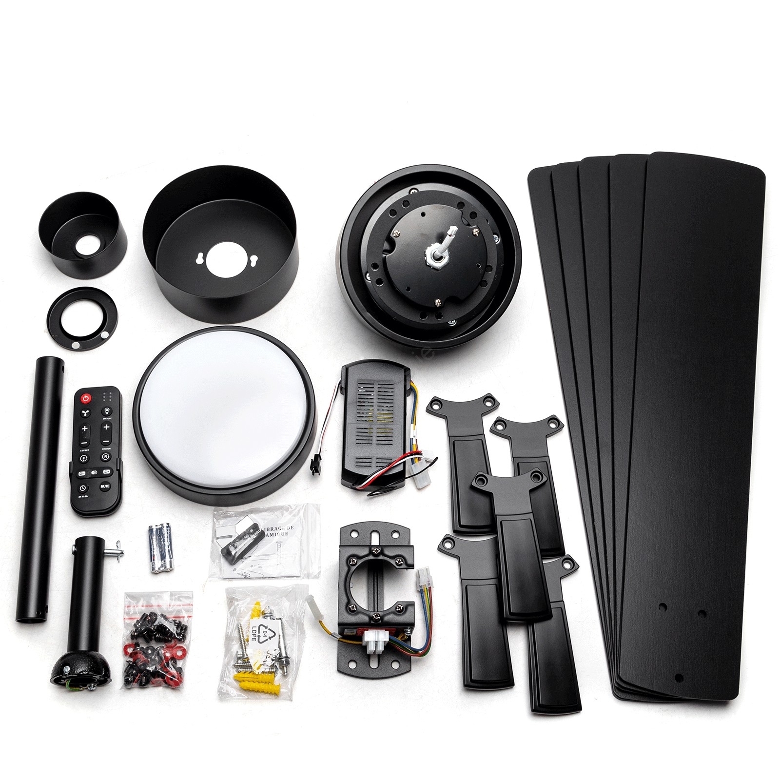 • Modern ceiling fan with light.