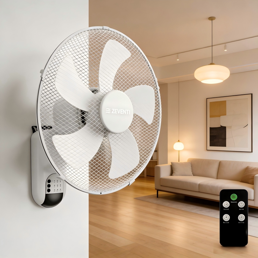 ZEVENTI - FANNY Wall-Mounted Fan 45W/230V Ø 41 cm White + Remote Control