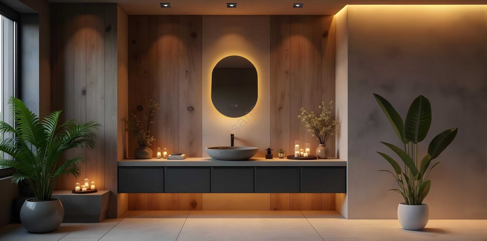 • Design wall mirror with LED lighting.